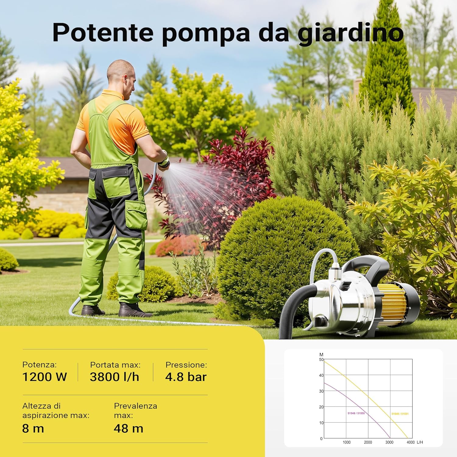- Il potente motore da 1200 watt eroga fino a 3.800 l/h