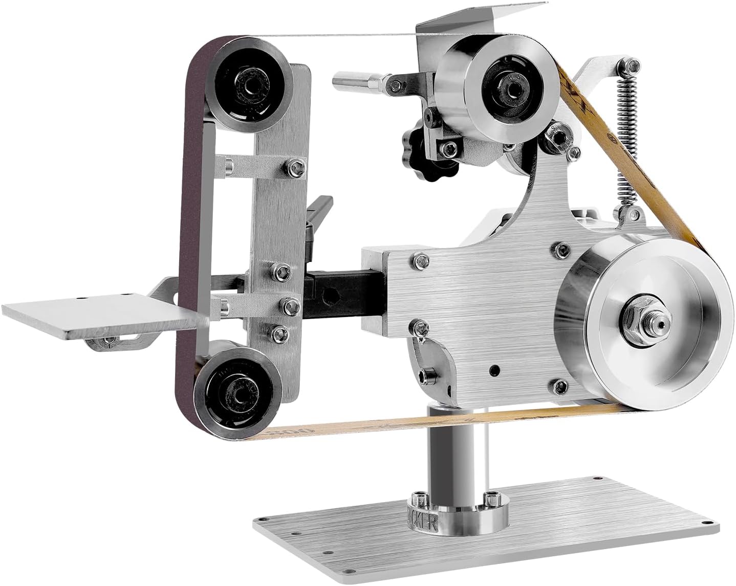 - [Sicuro da usare]: è progettato con fori di dissipazione del calore, che possono dissipare tempestivamente il calore per proteggere il motore. Il suo deflettore protettivo può evitare che la cintura abrasiva si rompa e ferisca le persone, oltre a impedire alle scintille di abbagliare gli occhi. In questo modo puoi usarlo con maggiore sicurezza.